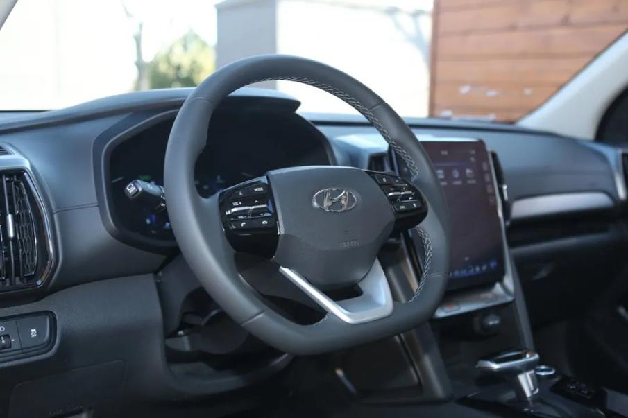除了在外觀和尺寸上做了升級,全新ix35在內飾上也做了不小的努力。內飾最大的變化是,將原本的中控屏和空調控制部分整合成了一塊10.4英寸大屏,支持觸控操作,使用便利性大大增加,而且是全系標配,再加上7英寸彩色儀表、飛航式換擋、D型多功能方向盤等主流配置,讓整個內飾看起來科技感十足。