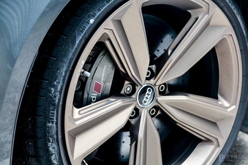 RS5標配的輪胎都是35扁平比,這次上場的新車都選了30扁平比,所以遠遠看起來,輪拱吃得很飽,只剩下邊緣那么一點塞下輪胎,能在視覺上讓直男徹底淪陷。