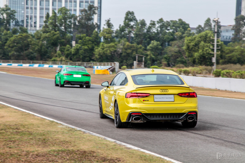 回到RS5 Coupé的動態表現上面來。因為全場最輕巧的車型就是Coupé(同時因為沒有媒體人愿意被塞在后排),所以在賽道日最后用RS5 Coupé跑全賽道是最歡樂的時刻。