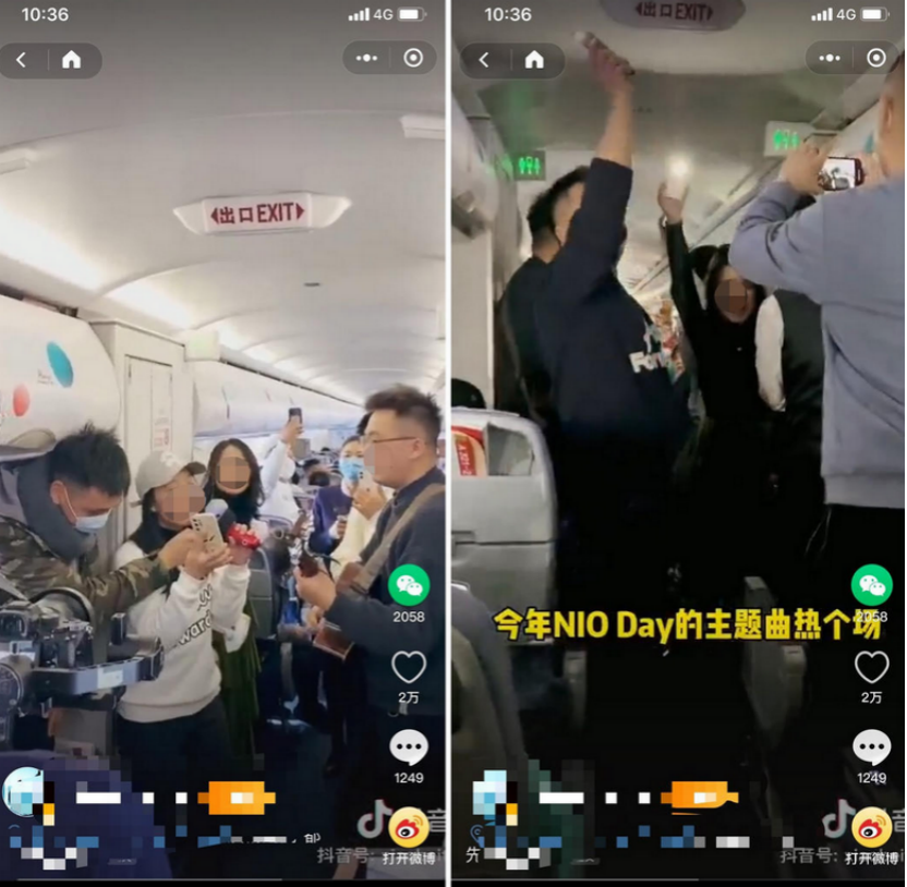 今年據說更有蔚來用戶包機前往成都參加活動,更是在飛機上不戴口罩蹦蹦跳跳,就是那么隨性。