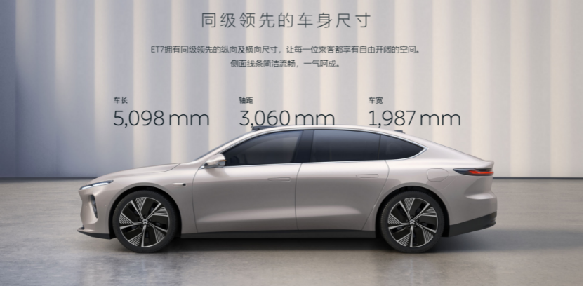 跑題了,說回ET7這臺車,該車車長超過5米,軸距超過3米,參數上妥妥的超過了Model S。