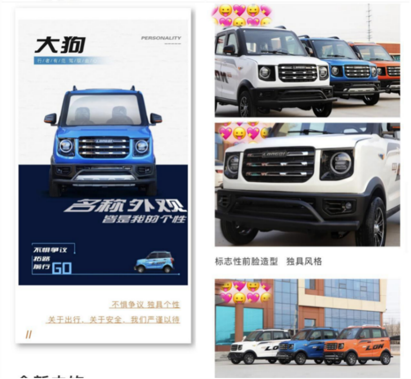 此外,該“廠商”還生產(chǎn)了LOGO名為“LONGQI EV”路虎衛(wèi)士,并且廣告詞也很有特色“無懼挑戰(zhàn)!一路馳騁!”