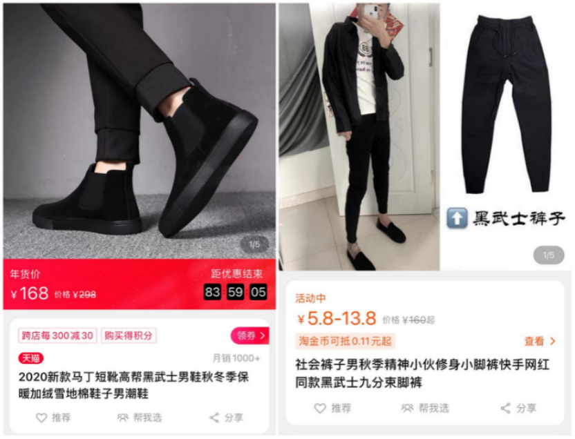 哎,對于我們這些普通群眾其實不那么重要了。對于大多數人來說“黑武士”三個字聽起來充滿了力量和低調,于是乎一些衣服廠牌也開始給自家的“雞腿褲”等套上“黑武士”的標簽。