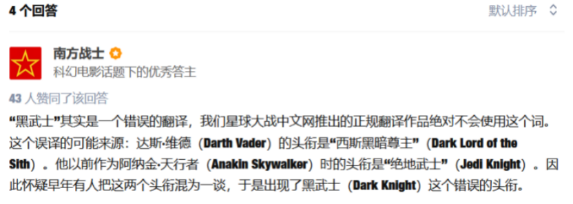 但其實“黑武士”這個只是民間的叫法,在星球大戰中文網并不允許出現。
