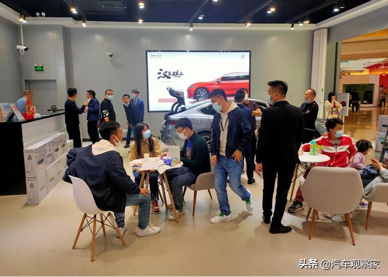 這個(gè)春節(jié),留在深圳這座城市就地過(guò)年的人數(shù)創(chuàng)下新高,大年初三下午,位于深圳南山區(qū)的比亞迪汽車歡樂(lè)海岸體驗(yàn)中心里人頭攢動(dòng),我們發(fā)現(xiàn)甚至有不少消費(fèi)者拖家?guī)Э跔?zhēng)相看車、體驗(yàn),而在崗的接待人員也有很多,他們紛紛忙碌起來(lái),邀請(qǐng)客戶試駕店內(nèi)擺放的高端新能源旗艦車型唐和漢。