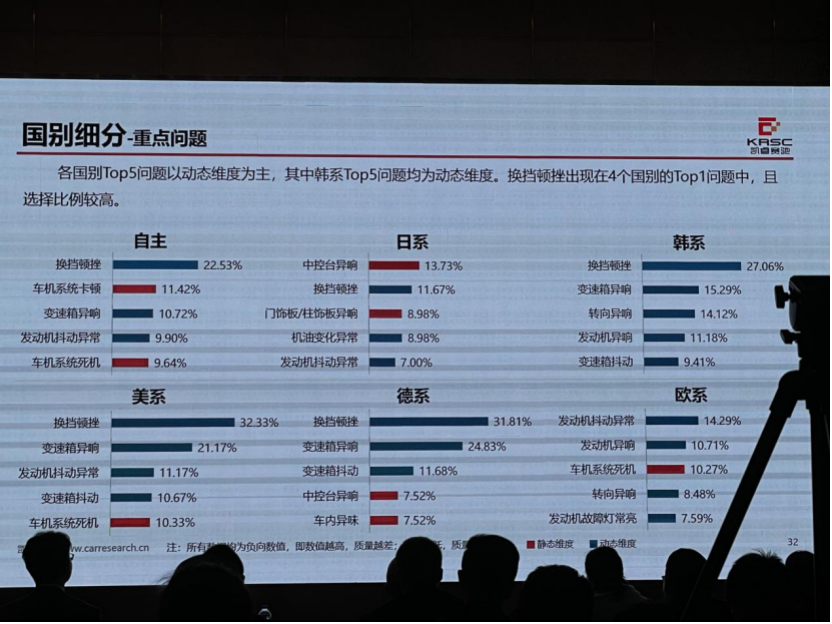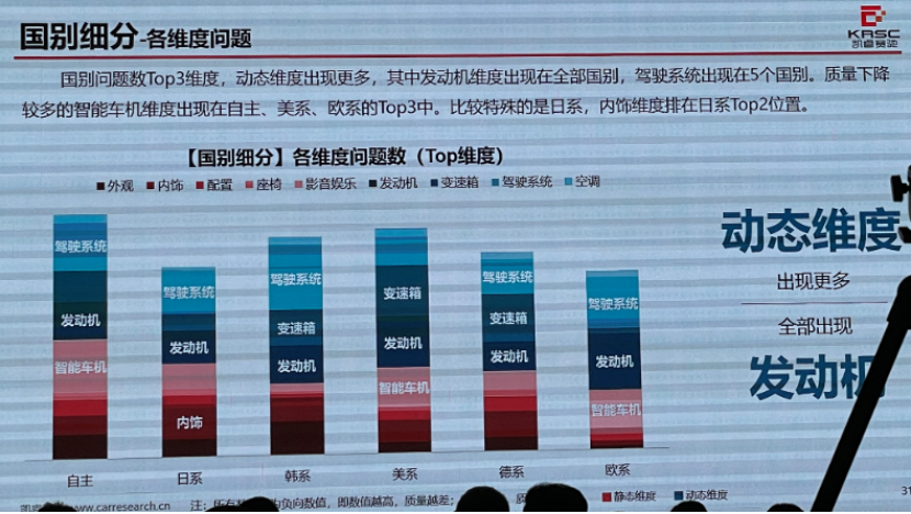 從多國別車型分析來看,自主品牌車型在車機系統(tǒng)方面相對問題反饋較少,在隨著大屏時代的到來之下,自主品牌找到更適合國內(nèi)市場突破口,并配以更豐富的功能擴展和更流暢的車機系統(tǒng)等實現(xiàn)趕超。 而日系的優(yōu)勢則在于內(nèi)裝方面,以更嚴謹?shù)难b配實現(xiàn)了更低的質量問題反饋。這個結果確實也挺讓我出乎意料,對于日系的內(nèi)裝個人認為只能算是中規(guī)中矩。相比于德系,確實還有一定的差距,當然日系車企總會表現(xiàn)出一種我們并不那么在乎這些地方的用料的態(tài)度。但其實,也在悄悄努力。