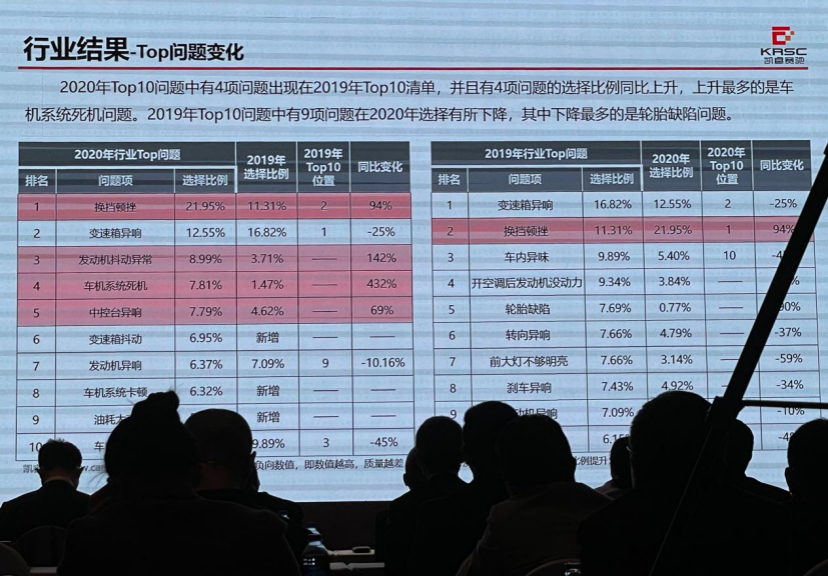 與2019年相比,行業(yè)質量表現(xiàn)變差,行業(yè)質量問題數(shù)集中在駕駛系統(tǒng)、發(fā)動機、智能車機、變速箱四個維度,其中智能車機問題數(shù)上升78%,負面表現(xiàn)增長107%,主要涉及自主、美系、歐系品牌;行業(yè)Top10問題中,換擋頓挫、變速箱異響、發(fā)動機抖動異常排名前三;其中全行業(yè)換擋頓挫問題選擇比例增長94%,多發(fā)于美系、德系、韓系品牌車型;轎車負面表現(xiàn)優(yōu)于行業(yè)平均水平; SUV問題數(shù)多于平均水平;MPV抱怨度高;自主品牌負面表現(xiàn)不及合資、豪華品牌,但抱怨度最低;德系和美系品牌的抱怨度高于行業(yè)平均水平;其中德系品牌的靜態(tài)和動態(tài)維度抱怨度均高于其他國別品牌。