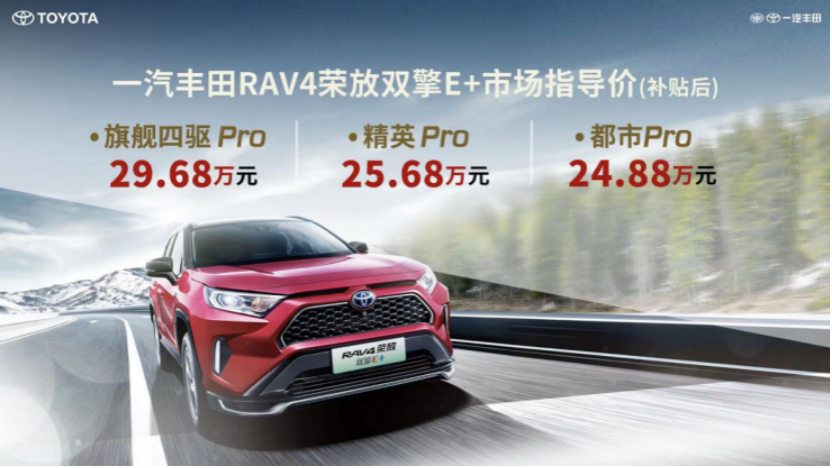 一汽豐田RAV4榮放雙擎E+共有3款車型,售價區間24.88萬-29.68萬元,純電續航里程根據車型不同分別有87公里和95公里。