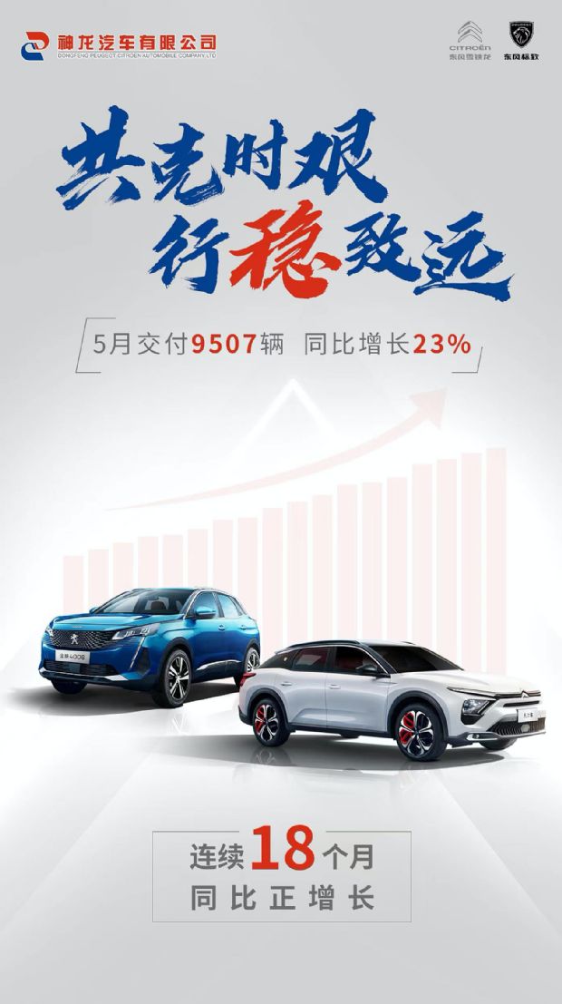 日前,神龍汽車官方公布最新銷量數據。數據顯示,神龍汽車(標致+雪鐵龍)銷量9507輛,同比增長23%,連續18個月銷量同比正增長。