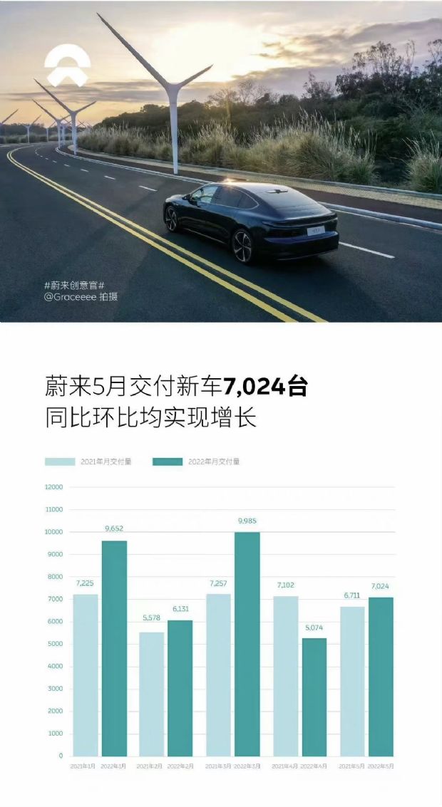 2022年1-5月,蔚來汽車累計交付量37866輛,同比增長36.9%。
