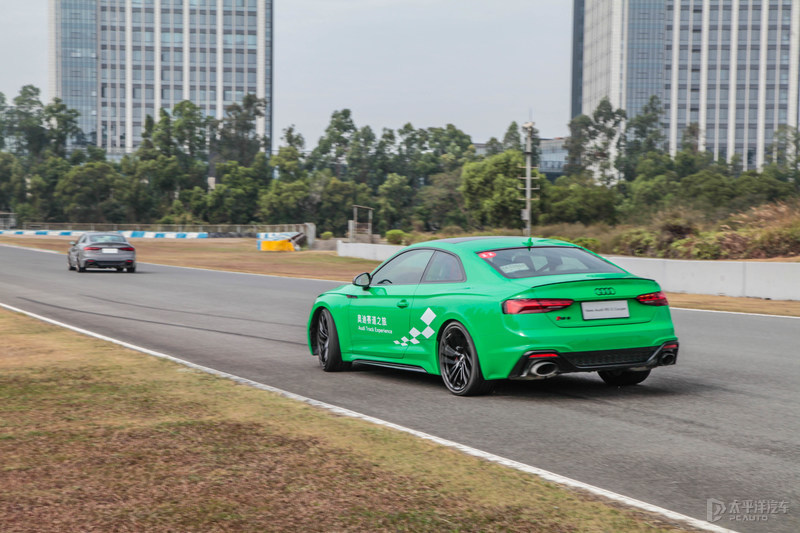 回到RS5 Coupé的動態表現上面來。因為全場最輕巧的車型就是Coupé(同時因為沒有媒體人愿意被塞在后排),所以在賽道日最后用RS5 Coupé跑全賽道是最歡樂的時刻。