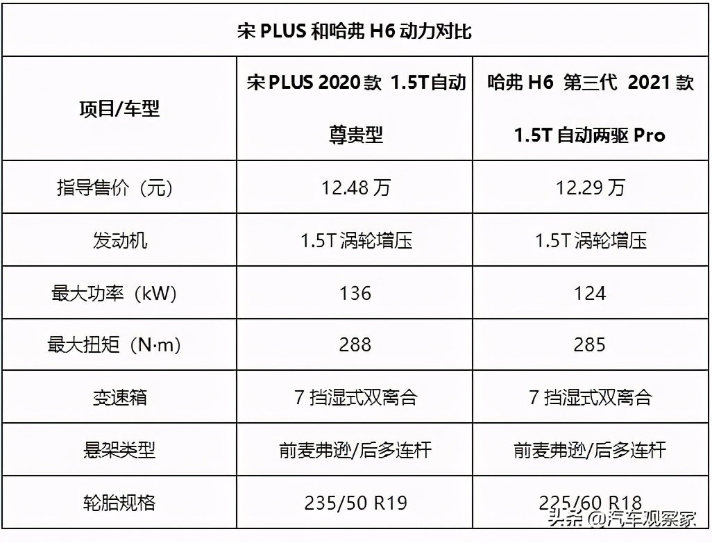 在說(shuō)動(dòng)力之前,先聊一下配置,今天這兩款車(chē)都是各自車(chē)系的主銷(xiāo)車(chē)型,因此,在配置方面都是相當(dāng)豐富的,而且自主品牌向來(lái)在配置方面不扣門(mén),因此不用太擔(dān)心。要說(shuō)區(qū)別,宋PLUS在智能安全方面比較出色,而哈弗H6則智能互聯(lián)、大燈科技等方面更領(lǐng)先。動(dòng)力方面,兩車(chē)都是搭載1.5T發(fā)動(dòng)機(jī),具體性能參數(shù)如下表: