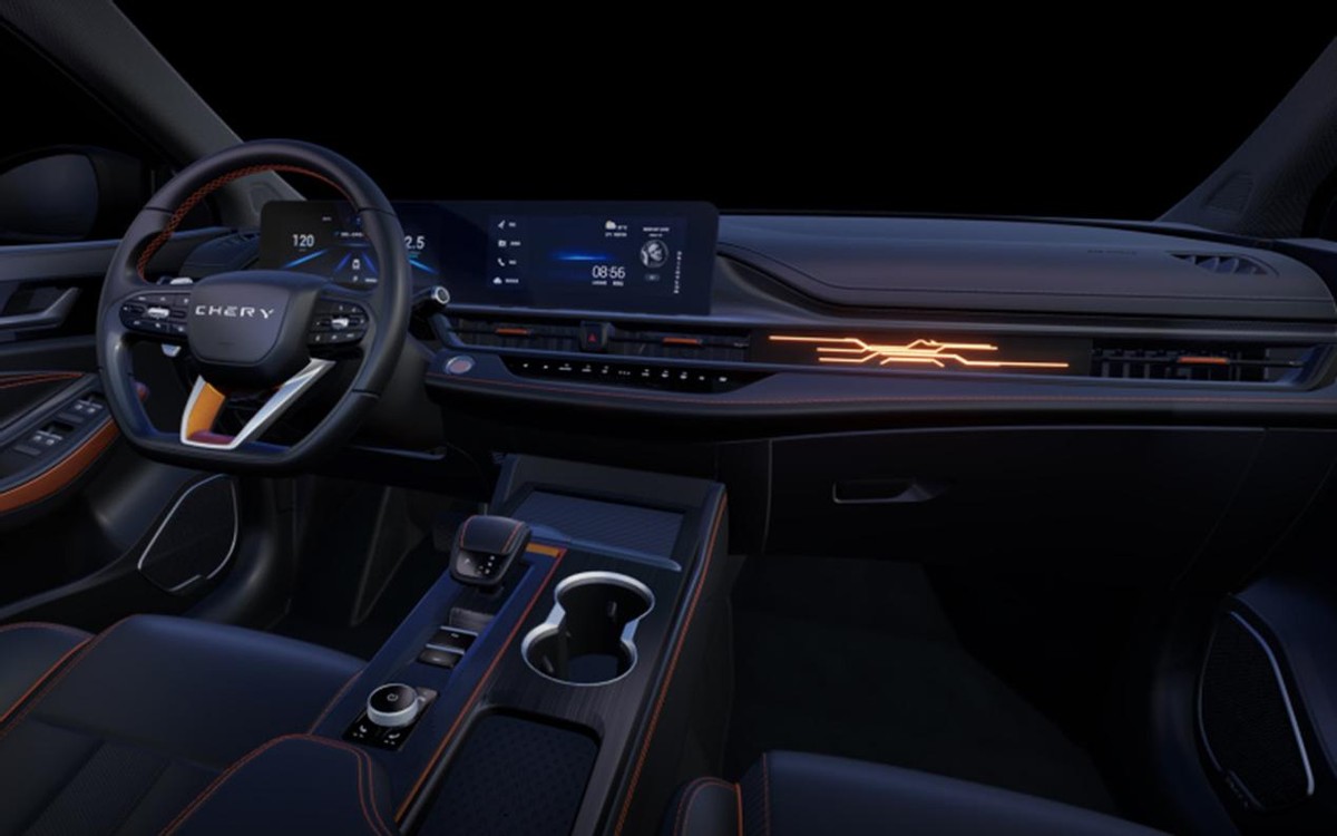 內飾方面,雖然艾瑞澤5 GT所采用的還是奇瑞常用的那套一體式雙聯屏設計,但得益于發光飾板的加入、橙顏色線條的點綴以及整體較為簡潔的設計,總體看起來也是沒什么太大硬傷的。